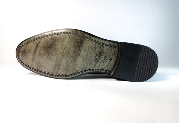 la semelle est une combinaison de deux produits caoutchouc/néocompanse, souple et légère, cette matière permet une adhérence parfaite avec le cuir, et une durabilité de la chaussure.