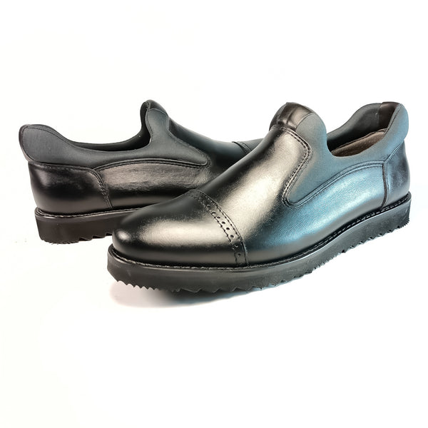 chaussure fabriquer en cuir véritable, très léger, une forme adapté pour tous type de pied, les parti supérieur de la chaussure es fabriquer avec un tissu élastique, il permet un contact doux un une facilité de porté