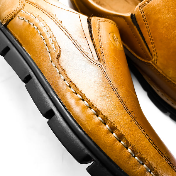 Chaussure confortable, l'extérieur en cuir naturel, munis de deux élastiques de part et d'autre pour se chausser facilement